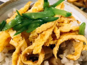 - ちらし寿司、ネギバターしょうゆ、小松菜のお味噌汁