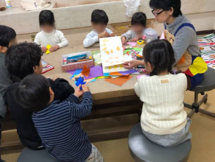 ️今年もよろしくお願いします。大雪の名残の雪かきで始まりました。お顔馴染みの方が、お友達を誘って来てくださることが増えうれしいことです。工作は節分のオニの豆入れを作りました。ウルトラ兄弟も参加。