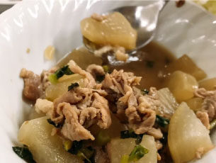 - 炊き込みご飯/豚汁/大根菜と豚肉の炒め物/大根と鶏肉の煮物/柿